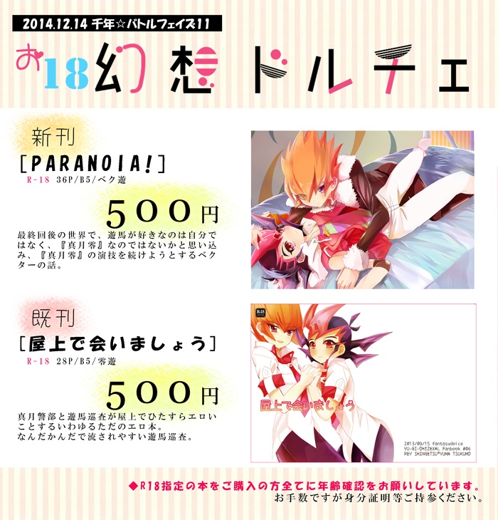千バト11情報です。 Category:日常生活 Date:2014年12月13日 当日のお品書きです。こちらから新刊情報です。取り急ぎですがよろしくお願いします。〆切前に熱だして死にかけました。はい。