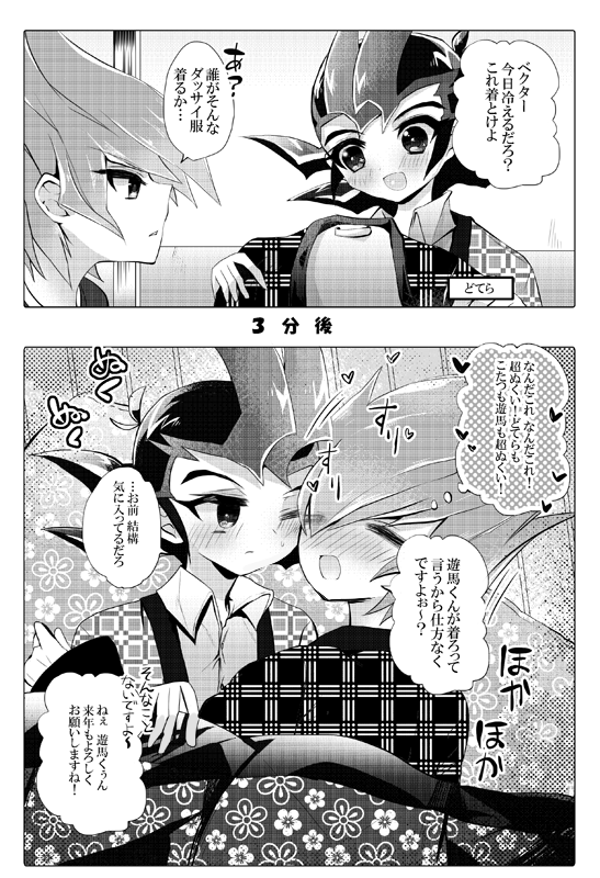 年末ほかほか漫画 Category:日常生活 Date:2014年12月31日 ベクター「日本の冬最高」 九十九家って座敷の部屋あったし、こたつもありそう。ゼアルの世界のハイテクが進んだ世界だけど、遊馬の家の場合明里ねーちゃんの作業部屋みたいな大量の機械がある部屋とかゼアル特有の世界観の丸みを帯びた家具とかある中で、庭に出てみれば縁側とかあったりどっか懐かしさがあるのがほんわかする。 デジタルだとトーンを惜しみなく使えて凄くいいですよね…アナログだと一度失敗してしまうと貼り直したりいい感じに誤魔化したりとか…もうなんか懐かしい。ゼアルで描き始めたあたりからトーンしばらく触ってないのですが、コストと作業時間の面でもデジタルいいですよね。ただ、使用できるのが豊富になってくると、それだけ密度とか完成度上げたくなってくるんで結局それなりに時間かかってるという。 今年はあんまりイベント参加できなかったんで、来年は行けるだけ行きたいですね~。ただ、遠征組なのであまり気軽にとはいかないのですが。来年からは翌日が祝日とかではない限りはイベント当日には地元に帰らなきゃですかね。今まではイベントの翌日の朝とかに帰ってたのですが、そういうわけにはもういかなくなったので。今までは月曜日は学校休みだったりとか、午後から授業だったのでイベント翌日帰宅が可能だったんですよね。イベント後のアフターでゼアルやアクファ見たりスケブとかお話とか楽しかったなぁ。なんかしんみりしてる!やだぁ!!来年もベク遊ちゃんのエロ本描きたいです!!!あと遊矢受けそろそろ。 今年最後のアクファでまさかのユート退場で!!?ってなりました。遊矢が光の粒子に囲まれながら消えそうになるユートのそばに駆け寄るシーン見て、「こういうシーン遊星と鬼柳で見たことある…」ってなりました。反逆組が好きなだけあって、あああ…。来年からどう動くか楽しみですね~。ユーゴもなかなか好みのキャラで描いてみたいです。見た目だけ見たら、クールキャラかな?って思ってたのですが、意外と熱血・言葉のレパトリーに偏りのある子でかわいかったですwあぁいう子は受けにしたくなりますね~。でもゆごゆやも見たい。 そんなこんなでしたが、来年もよろしくお願いします! PR