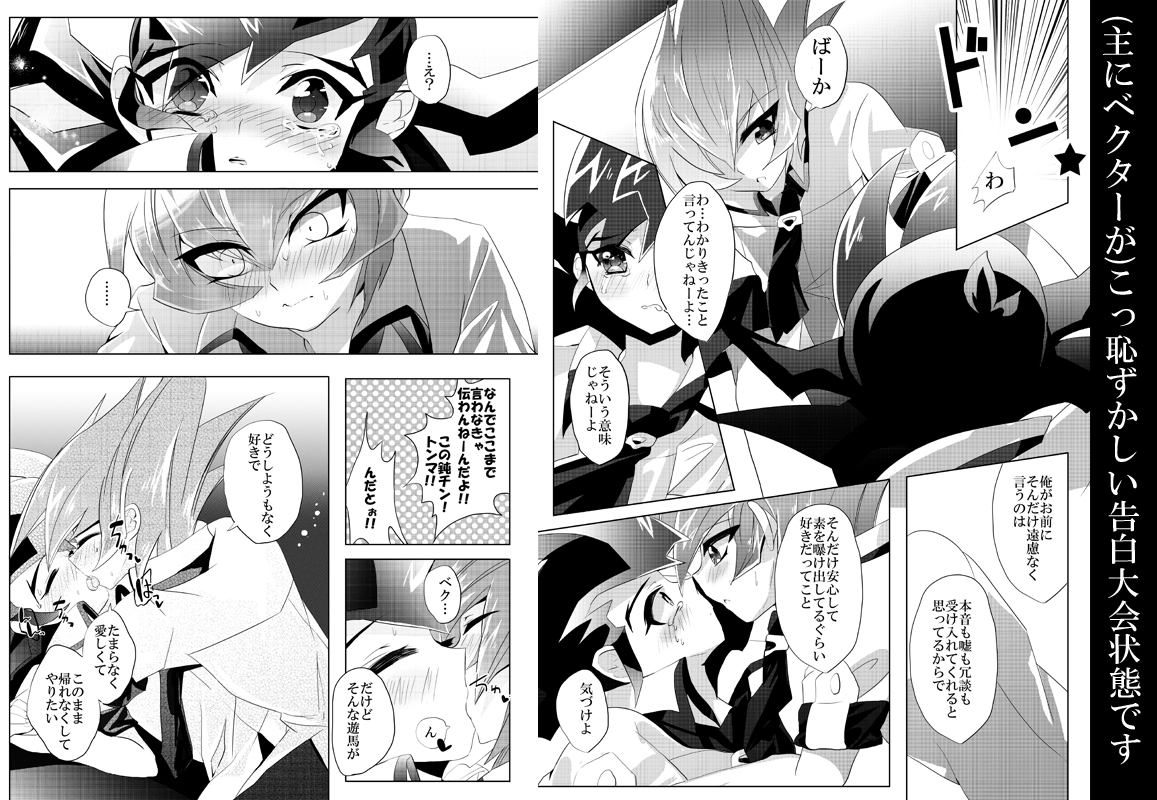 修羅場ってます。 Category:日常生活 Date:2014年03月31日 お久しぶりです、生きてます。黒霧です。 ゼアルが遂に完結して お疲れ様と思いきや、俺たちのかっとビングはこれからだ!なノリでこれからも挑戦心を諦めず、誰とでも分かち合おうとする姿勢を曲げずに進んでいくエンディングにすごく感動しました…。彼らの物語は幕を閉じましたが、前向きな終わり方でよかったです…。Cパートの夢オチのような幸せな生活が再びとかまさかのミザエルとドルべまで学園生活エンジョイとは思いませんでした。ミザエルはカイトと同い年でもよかったような気がしなくもないんですけど、ちょっとそこはびっくりしましたねw落ち着いたら感想書きたいと思います。 ベクター×遊馬アンソロに参加させていただいています。6P寄稿させていただきました! どこ開いてもベク遊エロ…みなさんがどのベクターで描(書)かれるのかすっごく楽しみですね~。私もちょっと迷ったのですが、そこはお楽しみということで。 千年バトルin大阪2 スペース出ました。A21です。新刊は見ての通り頑張りま…す……。