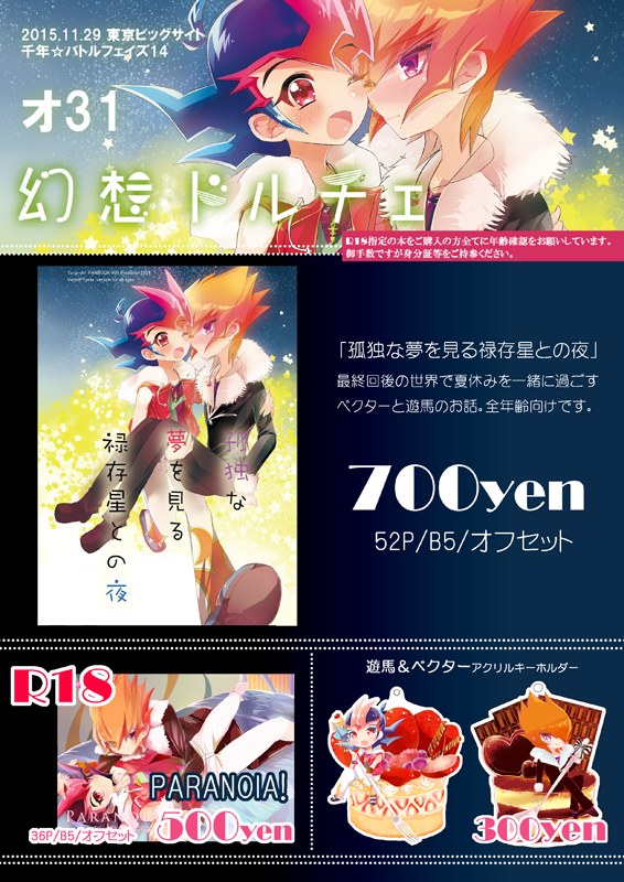 下準備は完璧 Category:日常生活 Date:2015年11月02日 5ページに1回はこのベクターぶん殴りたいなぁってなりますね。(演技してるベクター)いい意味でです。 あくふぁは柚子ちゃんがビルに衝突したにも関わらず無傷でマジストロングとしか言いようがないですね!よかった無事で…。素良くんの細かい心境とかまだわかりませんが、信じていたいですね…。思ったよりもシンクロ次元編が長くて驚いてますが、あくふぁも恐らく3年で 1区切りのはずですよね?ユーリはいつになったら本格的に動いてくれるのやら…。 今期はごちうさに心ぴょんぴょんして…あっ、ポイポイしてます。(ポイポイしない約束)エンディングのチノちゃんが可愛すぎてもうときめきすぎてあぁ~ってなりますね。もうホント癒されますし堪りませんわ。監獄学園のドラマが配信されてるそうなので原稿中に見てみようかなぁ~。といったところです。ところで巷でおそ松さんが流行ってるおかげで見分けがつきそうになってる自分がいます。こち亀で両津が描いていた時は全部同じに見えたのに…。